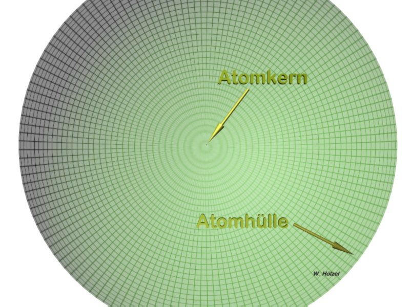 1. Die Durchmesser der Atomhülle ist 10 000 mal größer als der Durchmesser des Atomkerns (siehe kleiner